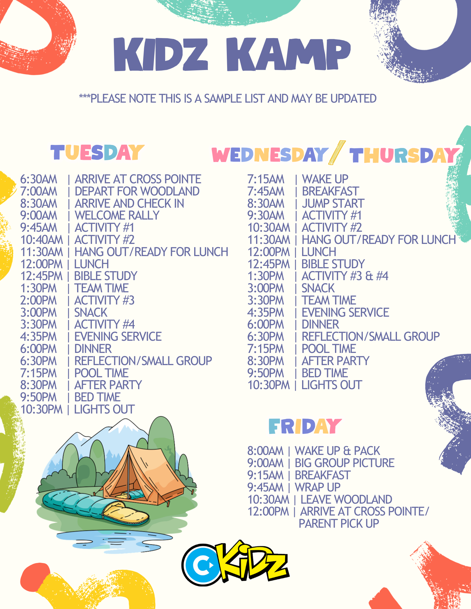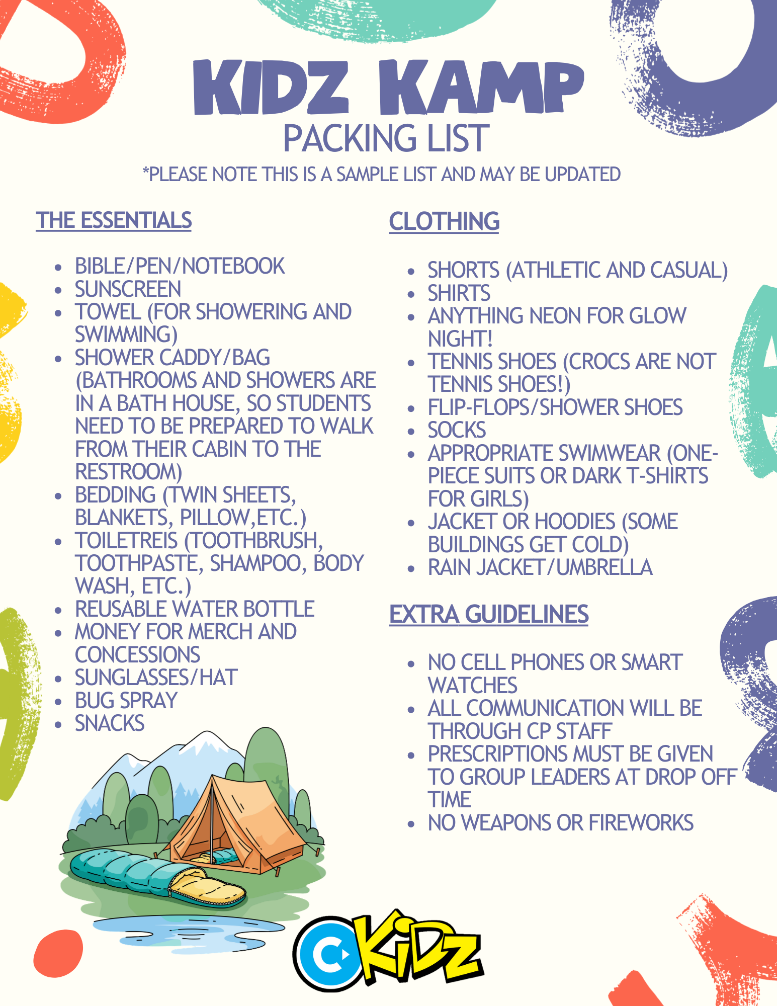 CP Kidz is going to camp! Kids Camp is a 4-day, 3-night retreat at Woodland Christian Camp in Temple, Georgia. Camp is for kids who have completed 3rd–5th grade by May 2026.